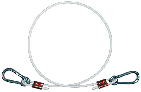 Страховочный трос из нержавеющей стали в виниловой оболочке для подвесных моторов малой и средней мощности. Предотвращает потерю мотора из-за слабой затяжки крепежных струбцин или в результате удара о подводное препятствие. Снабжен двумя карабинами из нержавеющей стали.