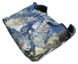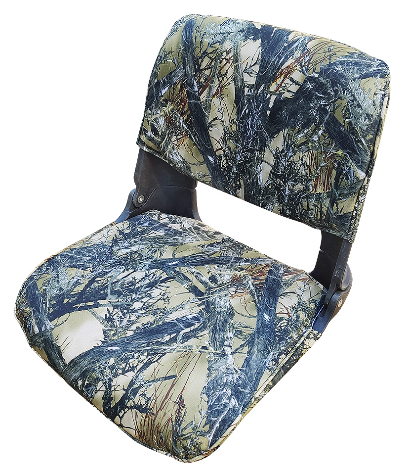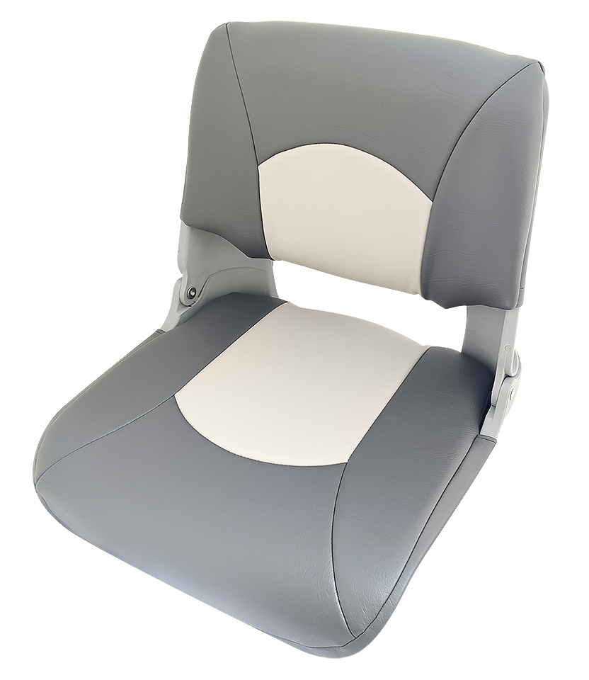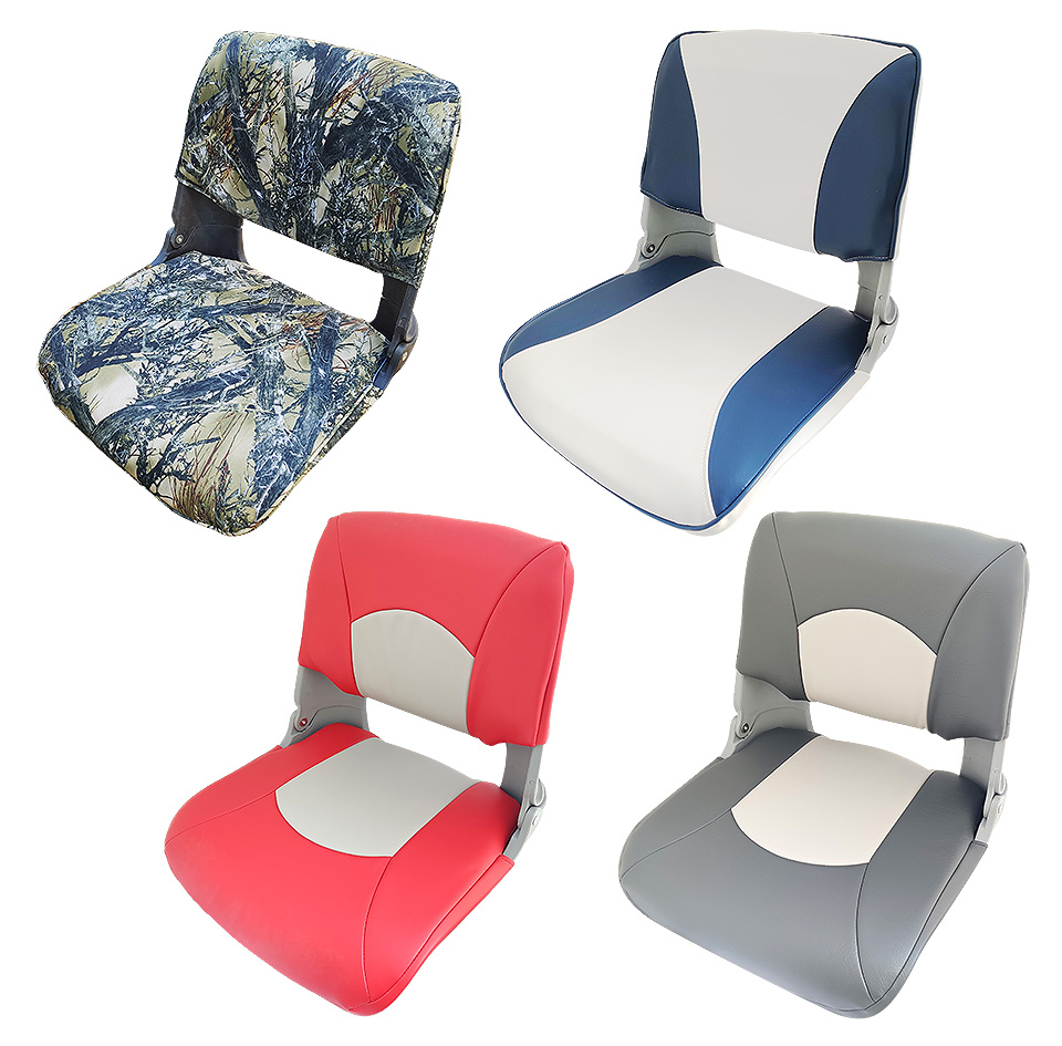 Мягкое сиденье с низкой складной спинкой. Обивка из винила, устойчивого к воздействию влаги и ультрафиолета и не впитывающего жидкостей.