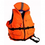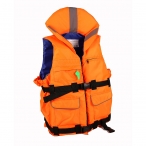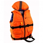 Спасательный жилет, выполнен в ярком оранжевом цвете, который будет хорошо заметен для спасателей на большой дистанции.