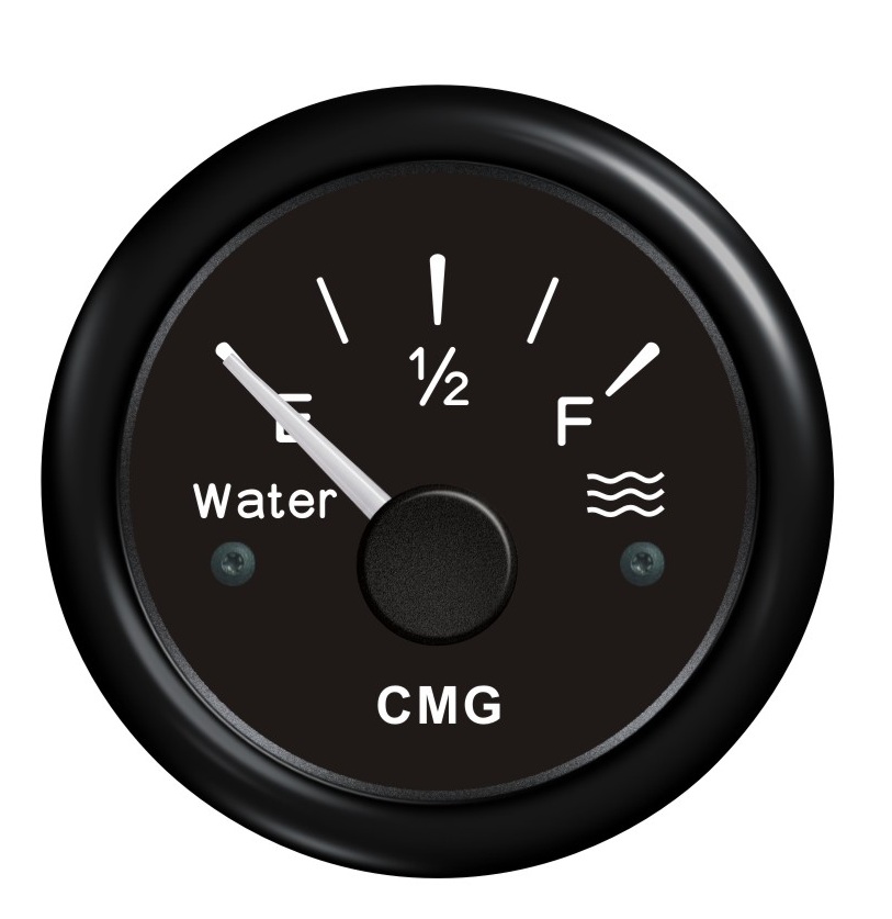 Указатель уровня воды чёрный с чёрной окантовкой диаметром 52 мм. Имеет внутреннее сопротивление 0-190Ω . Выбор красной или жёлтой подсветки Предназначен для работы с напряжением 12 В. Для адаптации под 24 в. Нуждается в дополнительном сопротивлении.