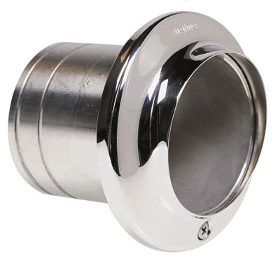 Выхлопной патрубок из полированной нержавеющей стали. Имеет место под установку резинового лепестка, препятствующего проникновению забортной воды внутрь выхлопного тракта.