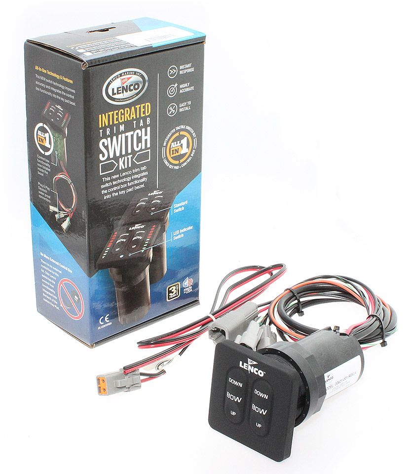 Пульт управления транцевыми плитами со встроенной системой автоматического подъема плит в транспортное положение после выключения зажигания. Предназначен только для транцевых плит Lenco с одиночными приводами.