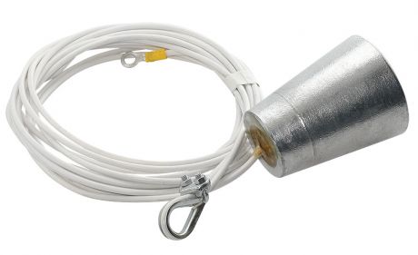 Анод-якорь цинковый. Позволяет защитить корпус от электролитической коррозии без монтажа анода непосредственно на корпус судна. Достаточно обеспечить электрическую связь анода (металлическим тросом или кабелем) с корпусом или иной защищаемой частью судна (например, угловой колонкой) и опустить анод в воду.