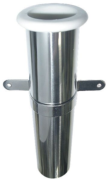 Держатель удилища. Крепится с помощью двух скоб, входящих в комплект. Нержавеющая сталь. Пластиковый фланец, предохраняющий древко удилища от повреждений.