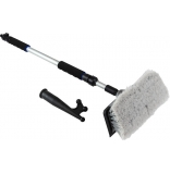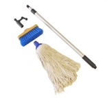 Щетка с синтетической щетиной и каналом для подачи воды. Вода подается через телескопическую рукоятку (64-103 см), имеющую штуцер под шланг. Насадка-багор в комплекте.
