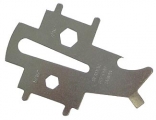 Универсальный палубный ключ из нержавеющей стали. Позволяет отворачивать пробки большинства типов палубных заливных горловин, откручивать такелажные скобы и стопорные штифты, служит отверткой, резаком, скребком, отверткой.