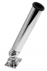 Держатель удилища из полированной нержавеющей стали. Фланец с резиновой окантовкой для предупреждения повреждения удилища. Изменяемый угол наклона. Крепление четырьмя винтами на плоскую поверхность.