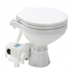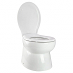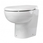 Унитаз судовой с электрической прокачкой. Корпус  закрывает основание, насос и установочные фитинги. Выходной штуцер снабжен невозвратным клапаном, предотвращающим выброс "черных" вод в унитаз из фекальной цистерны. Слив осуществляется за борт, либо в фекальную цистерну.