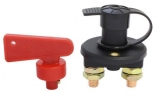 Компактный выключатель массы. Врезается в приборную панель или в переборку. Имеет съемную рукоятку, что позволяет использовать выключатель для предотвращения несанкционированного включения электропитания.