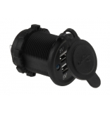 Гнездо питания с двумя USB гнездами и вольтметром. Два USB гнезда позволяют заряжать два устройства одновременно. Вольтметр для контроля состояния бортовой сети. Напряжение питания: 12/24 В (бортовая сеть). Максимальный зарядный ток (суммарно на оба гнезда) - 4,2А.