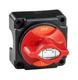 Выключатель массы в пластиковом корпусе, рассчитанный на ток до 1000 ампер (длительно 200А, 1000А - кратковременно). Предотвращает разряд аккумуляторов через возможные паразитные электрические цепи во время долгой стоянки судна. Может использоваться для аварийного обесточивания бортовой сети. Поставляется с резиновой брызгозащитной крышкой.