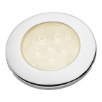 Светодиодный светильник в корпусе из нержавеющей стали. Полностью водонепроницаемый. Может устанавливаться в том числе в подводной части судна (не глубже 0,5 м). Не требует сверления отверстия большого диаметра под провод. Крепится двумя винтами. Белый, синий и зеленый свет.