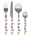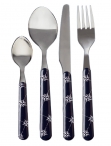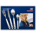Набор столовых предметов из качественной нержавеющей стали с рукоятками из пластика. Вилка, нож, большая и чайная ложка - по 6 шт (всего 24 предмета в наборе). Цена за набор.