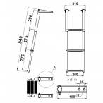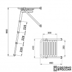Складной трап из нержавеющей стали с 3 деревянными ступеньками шириной 270 мм.