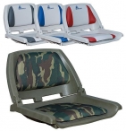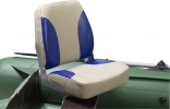 Мягкое сиденье со складной спинкой и боковой поддержкой. Обивка из винила, устойчивого к воздействию влаги и ультрафиолета и не впитывающего жидкостей.